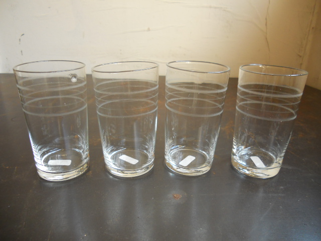こちらもぽつぽつと気泡や筋があったり形がそれぞれ違っていたりと古さがあります。柄はシンプルな4本ライン。