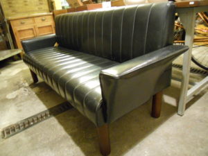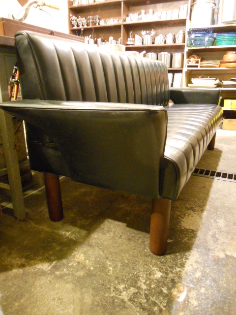 黒いシンプルなデザインの3人掛けソファ。お部屋に合わせやすそうです。サイズ H70cm(座面35cm)×W170cm×D52cm