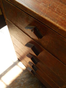 小さめの小引き出しです。ひし形のつまみがカワイイ。